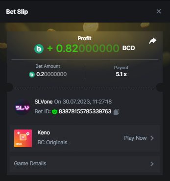 3. Claasic Dice 10x - Done! https://bc.game/#/sd/11VJ56MWLI29FR Wheel 29,7x - Done! https://bc.game/#/sd/11VJ5Q72Z3ZSIN Roulette 36x - Done! https://bc.game/#/sd/11VJ5S8Y0FIEIR Crash 10x - Done! https://bc.game/#/sd/11VJ60FG8HRX9B Baccarat 9x - Done https://bc.game/#/sd/11VJ62N6P39EAJ Run away zombies 10x - Done! https://bc.game/#/sd/11VJ6I29KZD4M3 Enable 2FA for your BC.Game account + Verify E-Mail & Phone Number (If 2FA already activated, keep it activated) - Done! Plinko 76x - Done! https://bc.game/#/sd/11VQX4WTGEGE3J Lucky Easter 30x - Done! https://bc.game/#/sd/11VQYCWN8ZYXJZ Keno 50x - Done! https://bc.game/#/sd/11VQYI7T4ZCK1F