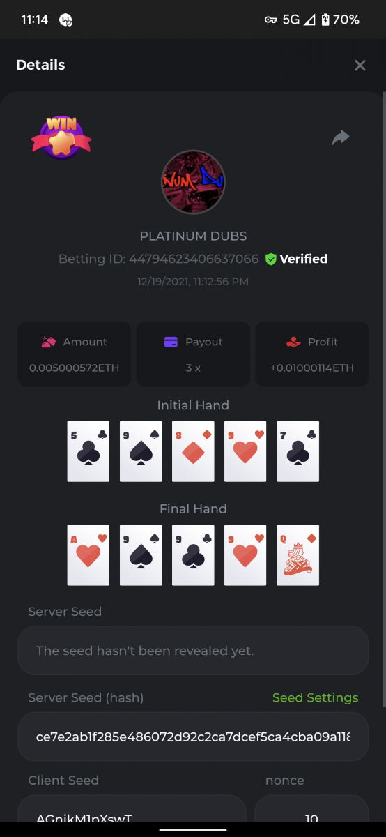 7. Betting ID: 4644773 https://bcgame-project.github.io/bcgame-blackjack/?s=W5kvdHw%2BkSD4o15UOBhdivpb8LHW5jLle1b1r7q1OlE1uV8pHOYquXXrEKFiawcOY3O83qUurpxO%2F2VHxgCKVChI5al%2F%2BJKuPdenqqKJhcjO%2FxuXWkfl%2F%2FF1ugH9sKgNsifeAVMr6N43asyHuotgRwRf29URmPCddKhV6fw7wNc%3D&i=222078&range=205,214