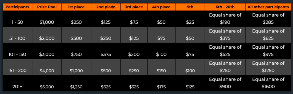 $5,000 EXCLUSIVE PRESTIGE CHALLENGE #111 DURATION: 23rd JAN - 30th JAN 14:30 UTC Get ready for the Prestige Challenge featuring the highly anticipated game CAVE OF PLUNDER! Dive into this thrilling event from January 23 to January 30, ending at 14:30 UTC, and compete for a share of the $5,000 prize pool. Make sure to check all the terms to learn how you can be a part of this exciting challenge. Wishing you the best of luck! What's the Challenge? Capture a multiplier - 15.5x or higher on the Cave of Plunder Game. Make sure you get your multiplier captured on my bets section. In case of a tie in multipliers, ranking is based on higher average bet amounts (USD). If still tied, the first to post or edit their entry will be prioritized in the ranking. How to Enter To enter, copy the link of the bet you'd like to submit. Once you've copied it, paste it as a reply to this thread like so: Link: https://bc.game/#/sd/11R44BMJQJ0TI3 In the same post, upload a screenshot of your win by clicking the game ID WITH VIEW IN USD mode ENABLED (accessible at the bottom of dropdown menu for your wallet up top. This way, we can ensure that your bet indeed met the minimum requirement at the time of placing it: Link: https://bc.game/#/sd/11R44BMJQJ0TI3 Minimum VIP Minimum VIP 4 with phone verified will be eligible! Minimum Payouts The minimum payout to qualify is 15.5x Minimum Bet Size $0.4 USD equivalent Eligible Coins All cryptocurrencies are eligible (excepting JB) Available Prizes GENERAL TERMS Please combine all of your hits into a single post. Edit your existing post for additional hits; don't create a new post. Each eligible entry must have the Bet Slip URL; failure to include it will disqualify participation in the event. The Bet Slip image is not mandatory. Bets must be posted within 24 hours of placing the bet in order to keep things fair for everyone. Bets must be made during the specified time window stated above. This thread will lock automatically when the time period is over. One (1) entry per household. Anyone found attempting to win multiple prizes will be disqualified from this challenge as well as all future challenges. Failure to follow the instructions will result in your submission being null and void. By entering this challenge, you acknowledge that BC.Game has the final say on results and placement. Payouts will be distributed after the event is finished. Please note that it could take anywhere between 3 to 7 days after the completion of the event.