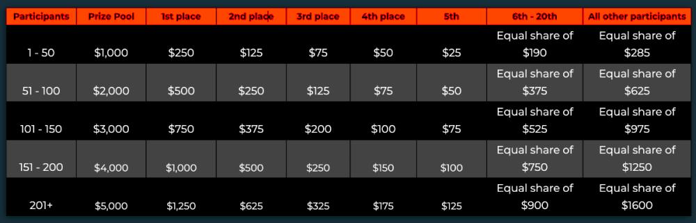 $5k Prestige Crash Challenge #107 DURATION: 22nd SEP - 29th SEP 13:20 pm UTC Dear esteemed VIP members, it's our pleasure to welcome you once again for an exhilarating week of contests and fervor from 22nd September to 29th September. Gear up for the much-awaited Prestige Challenge, a platform to showcase and push your Crash skills to the pinnacle. The focus of this week's tournament is on attaining the top multipliers, guaranteeing a heart-racing encounter unlike any other. The rules are clear-cut, and with a prize pool that's too tempting to resist, be assured that the competition is fiercer than ever. Let's dive into this remarkable challenge without any further ado. Kindly peruse the attached terms and conditions with utmost diligence. What's the Challenge? Win the highest multiplier you can on BC.Game's in-house game, Crash. If there is a tie, the player with the higher average bet amount (in USD) shall be the winner. If there is a tie in the amount and payout, the one who posted or edited his post first will be considered in the Ranking. How to Enter To enter, copy the link of the bet you'd like to submit. Once you've copied it, paste it as a reply to this thread like so: Link: https://bc.game/#/sd/11IMVWRRUCY1XZ In the same post, upload a screenshot of your win by clicking the game ID WITH VIEW IN USD mode ENABLED (accessible at the bottom of dropdown menu for your wallet up top. This way, we can ensure that your bet indeed met the minimum requirement at the time of placing it: Link: https://bc.game/#/sd/11IMVWRRUCY1XZ Minimum VIP Minimum VIP 4 with phone verified will be eligible! Minimum Payouts Minimum payout to qualify is 20x Minimum Bet Size $0.2 USD equivalent Eligible Coins All cryptocurrencies are eligible (excepting JB) Available Prizes GENERAL TERMS Please combine all of your hits together in a SINGLE post. Edit your existing post for additional hits, don't create a new post. Each eligible entry must have the Bet Slip URL, failure to include it will disqualify participation in the event. Bet Slip image is not mandatory. Bets must be posted within 24 hours of placing bet in order to keep things fair for everyone. Bets must be made during the specified time window stated above. This thread will lock automatically when the time period is over. One (1) entry per household. Anyone found attempting to win multiple prizes will be disqualified from this challenge as well as all future challenges. Failure to follow instructions will result in your submission being null and void. By entering this challenge, you acknowledge that BC.Game has the final decision on results and placement. Payouts will be distributed after the event is finished. Please note that it could take anywhere between 24 hours to 7 days after the completion of the event.