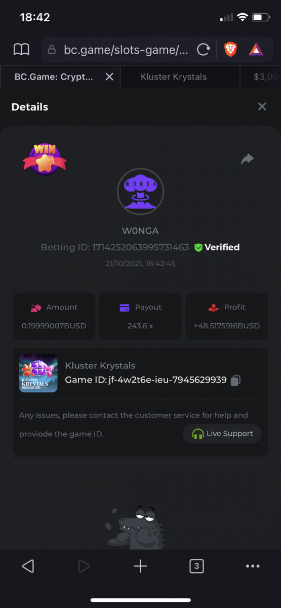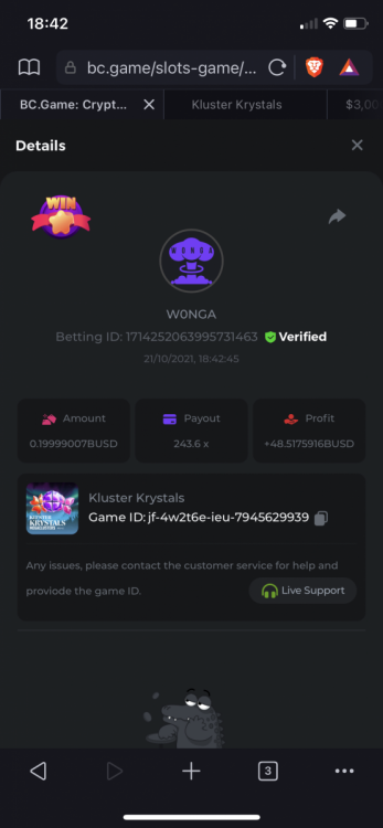 2. Betting ID: 1714252063995731463 243x Kluster Krystals