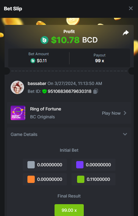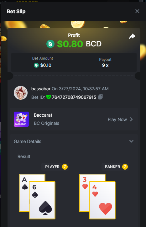 7. Hi @BCGame_Maxim, There is a task to hit a natural blackjack with red cards only. I hit it with a bet of 0.1$, though it shows not as a win or 0.1$ basebet. I checked with a few other people and they have the same issue of the bets not showing correctly. I tried different coins, show in different fiat valuta, etcetc, none of it helps to get it correct. My question is will this bet be accepted this way? And if not, what could I do to get it right? I posted the bill ID with the same gameid to show i placed it and won with 0.1$: Betlink: https://bc.game/#/sd/11VIK5D84FLS13