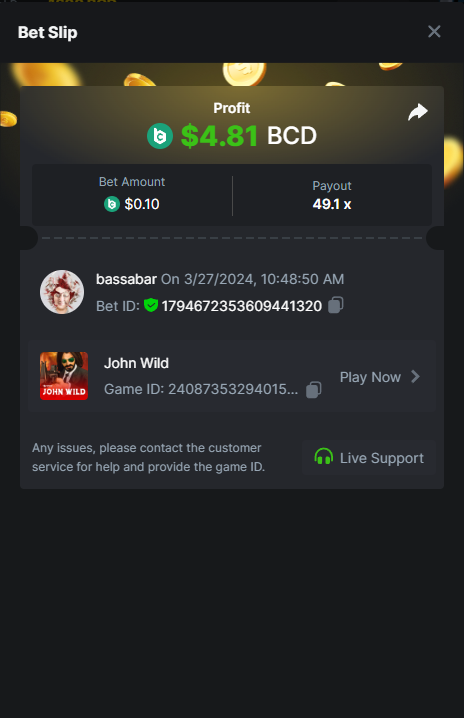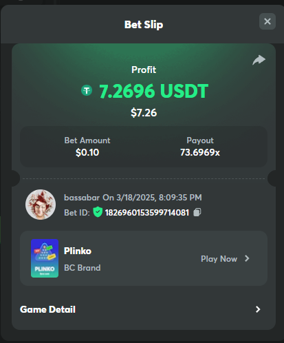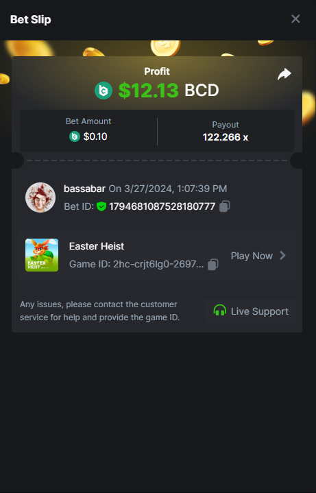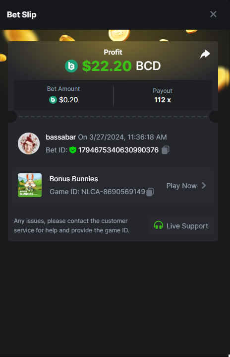 4. Hi @BCGame_Maxim, I want to submit my bet for the crash challenge: https://bc.game/promotion/b4c8825db367cdd But the submit button doesnt work? How can I submit my bet? Thanks in regards, Bassabar