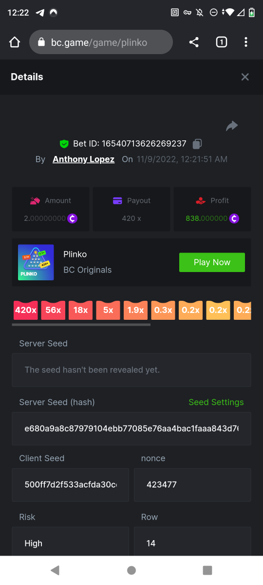 • Favorite Game Plinko
