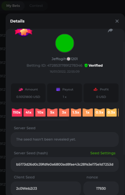 Betting ID: 50846928111414107 Limbo 50x Betting ID: 51443872730972376 Limbo 250x Betting ID: 720497883 Crash 50.01x