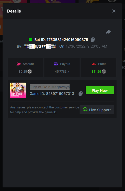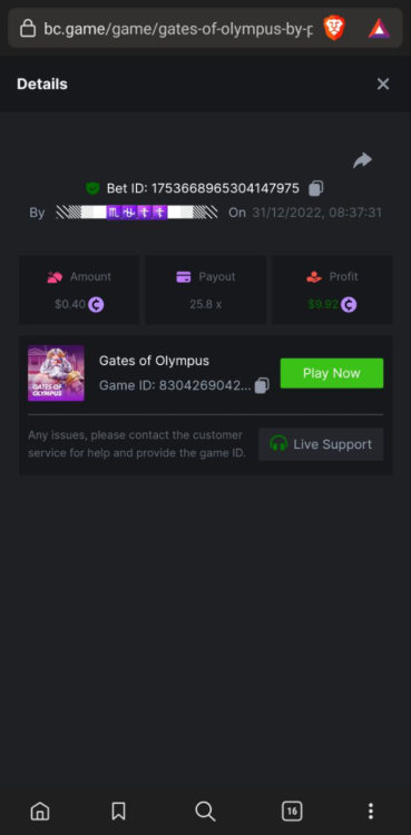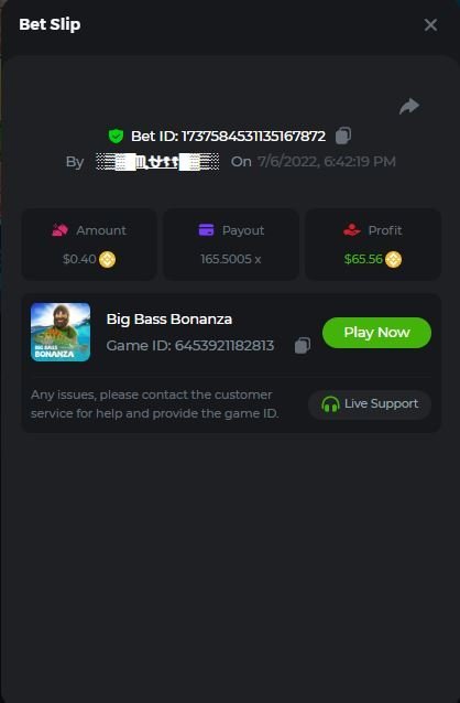 4. Super Joker 24.0375x @ $0.06 https://bc.game/#/sd/110AD5IRRHCQHF Bigger Bass Blizzard - Christmas Catch 50.020x @ $0.23 BOUNTY MULTIPLIER https://bc.game/#/sd/110ADW89D1CXLF Fury of Odin Megaway's 45.778x @ $0.25 https://bc.game/#/sd/110AEJWNS0IG43 Hot Pepper 100.05x @ $0.20 https://bc.game/#/sd/110AGM60GCZQ4Z Gates of Olympus 25.8x @ $0.40 https://bc.game/#/sd/110CSQ6V3XDNO3