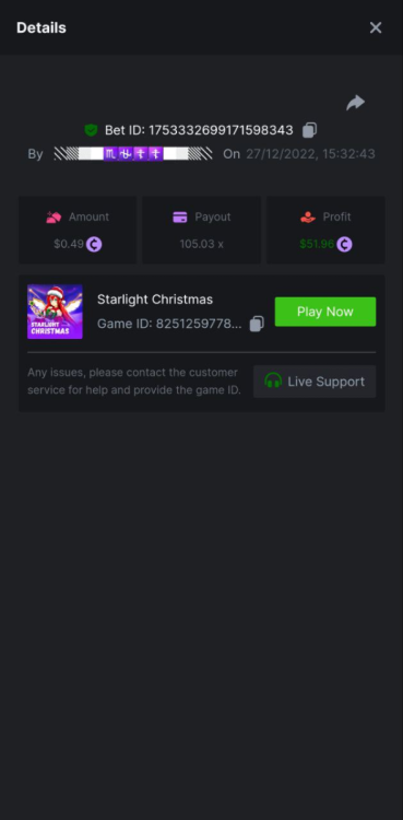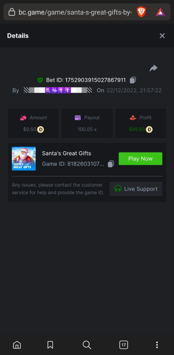 5. Santa's Great Gifts 100.05x @ $0.50 https://bc.game/#/sd/10ZRVNDR1F9M37 ================================================================ Sugar Rush 36.35x @ $0.80 https://bc.game/#/sd/10ZRX8C3TG75ZN ================================================================ Starlight Christmas 100.11x @ $0.79 https://bc.game/#/sd/10ZRXKWPAKKF83 ----------------------------------------------------------------------------------------------- 105.03x @ 0.49$ https://bc.game/#/sd/1103LNN0O5EW43 ================================================================ Total multiplier: /// ================================================================