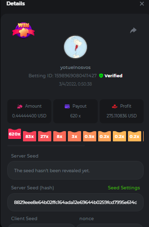 |11 x| 13x | 22x | 29x | 33x | 43x | 58x | 76x | 88x | 110x | 120x | 170x | 260x | 420x | 620x | 1000x | 11x https://bc.game/#/sd/10WXQJHAC93AQB 13x https://bc.game/#/sd/10WZ9S36YV4P3N