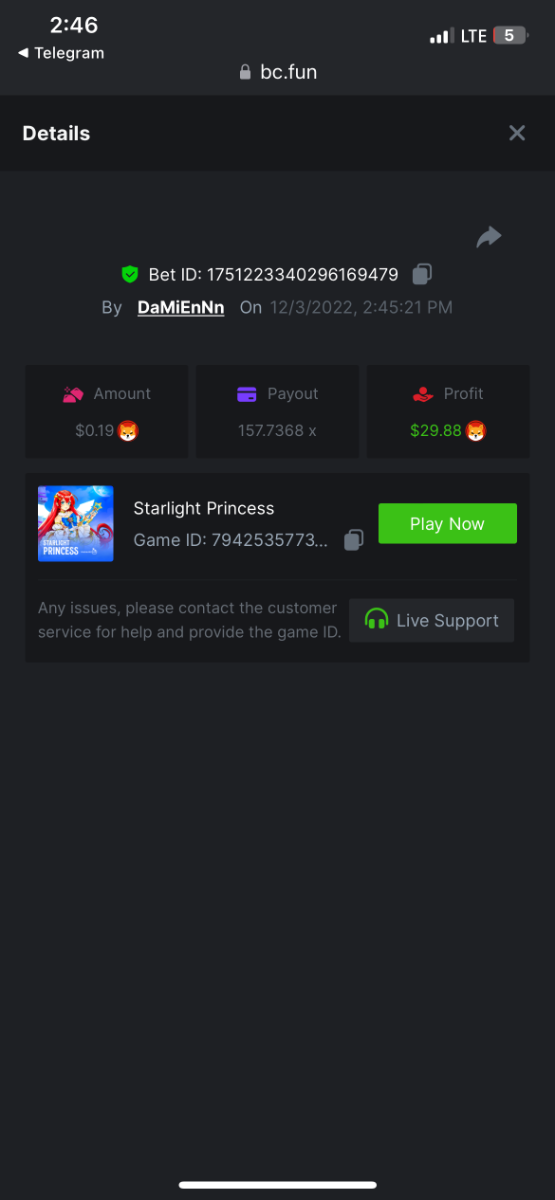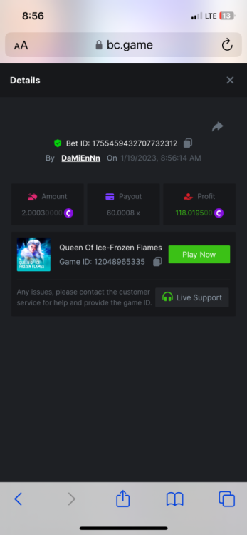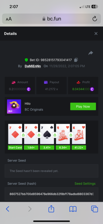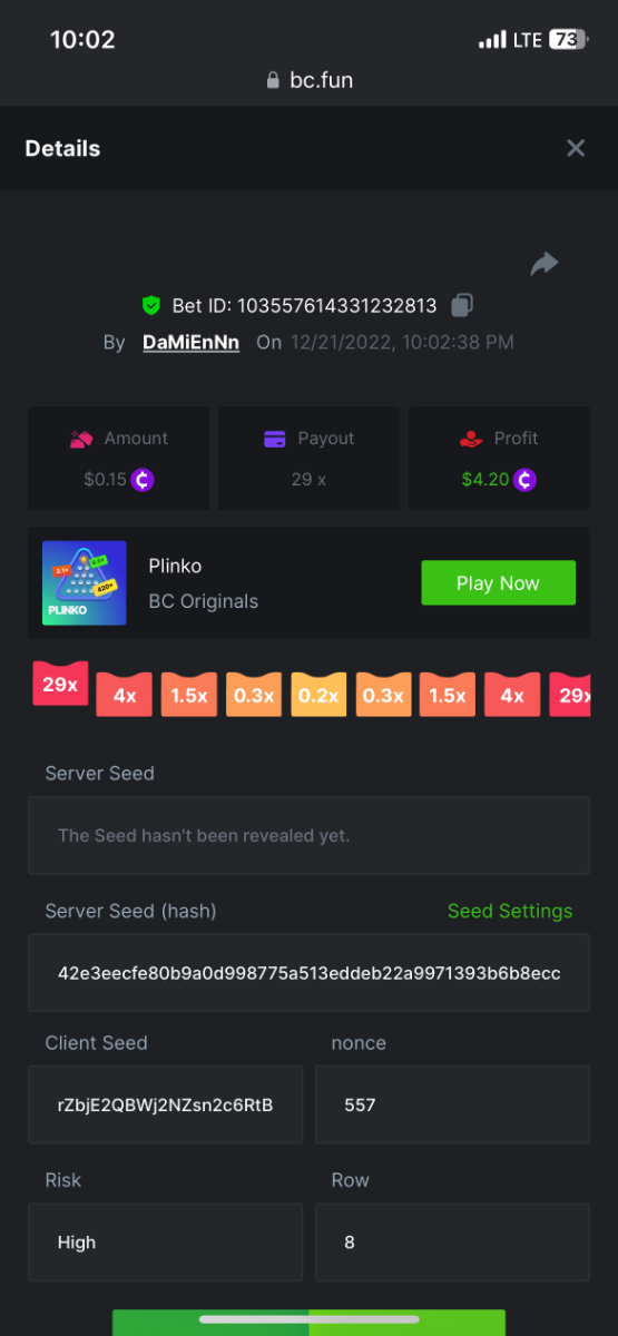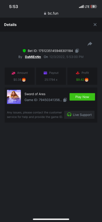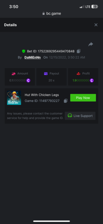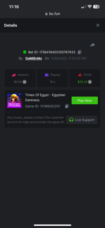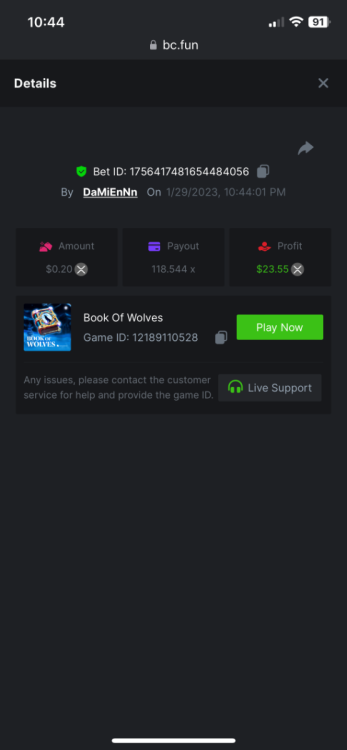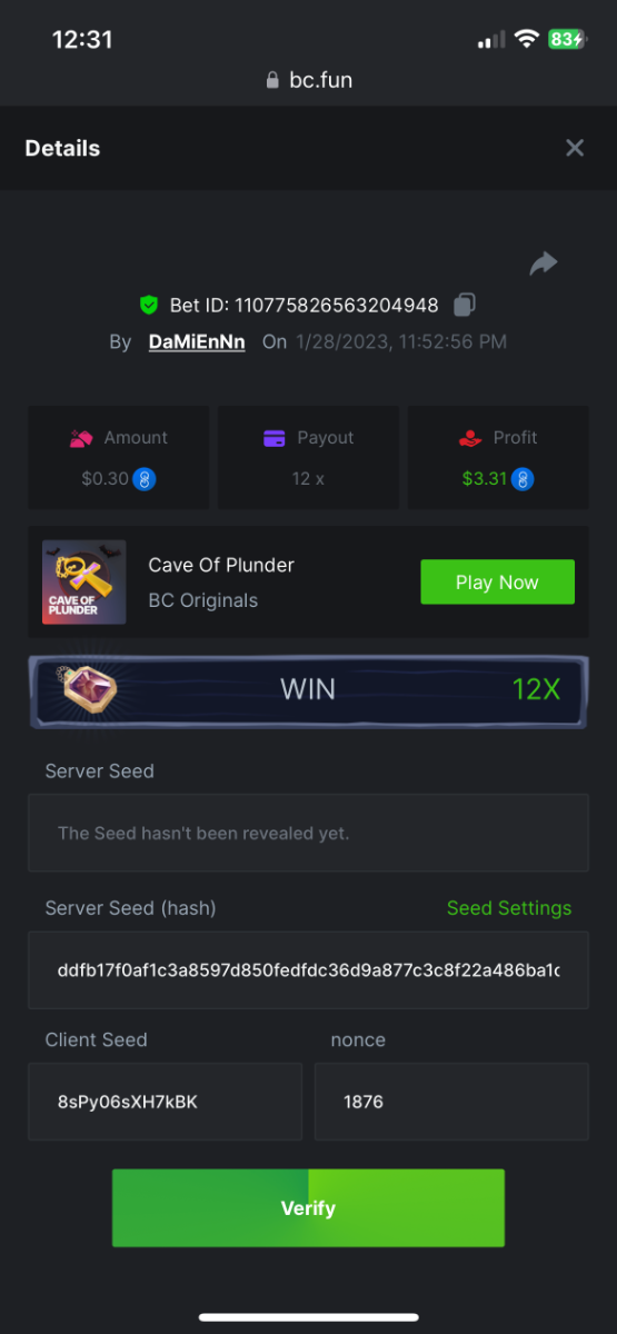 https://bc.fun/#/sd/112DOFUXGU3FGZ 12x $0.30 bet Don’t know if you can use this one because I lost bet link but I post it below anyways Cave Of Plunder-Win 110775826563204949 1/28/2023, 11:53:02 PM 33.60x $0.30 bet - $10.08 win -