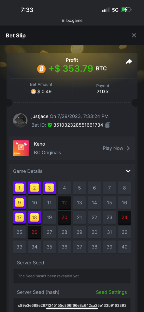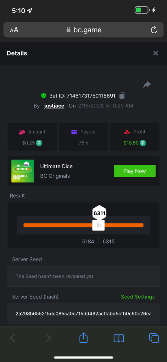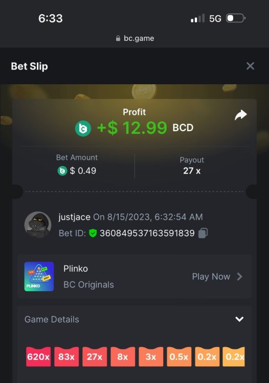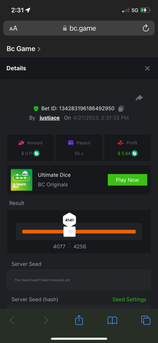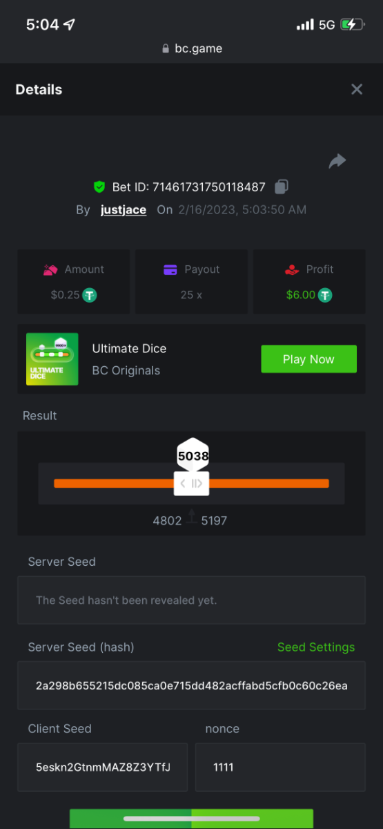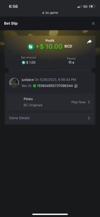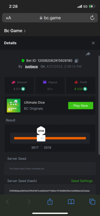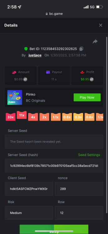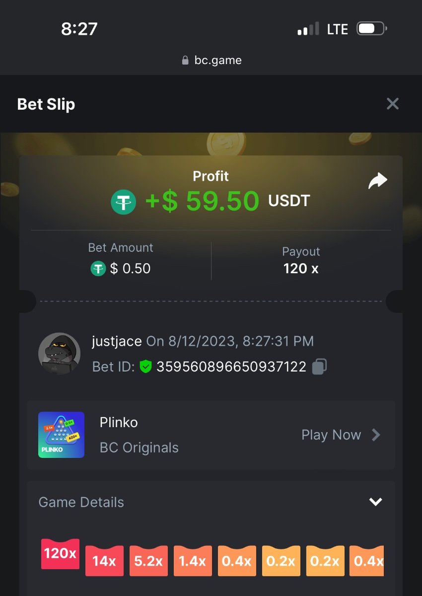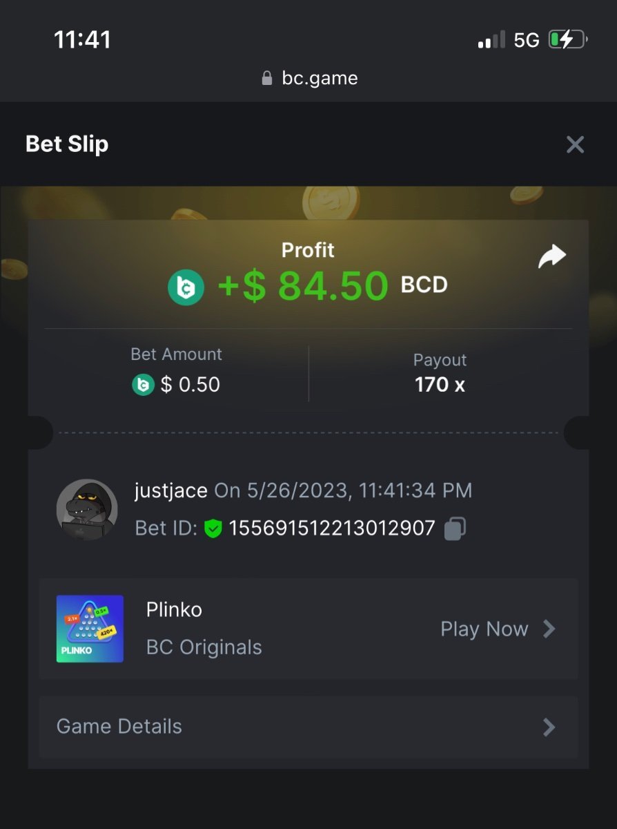 5.1x : https://bc.game/#/sd/1138ZN41M803RN 11x: https://bc.game/#/sd/1138ZWV6Q4I0IB 100x: https://bc.game/#/sd/113DU4H2V30MQB 180x: https://bc.game/#/sd/113DUHFTXSW4K3 63x: https://bc.game/#/sd/113E3M85OJT1XV -