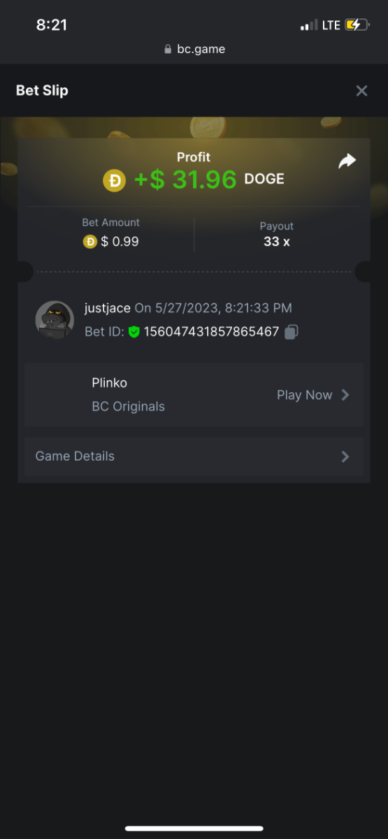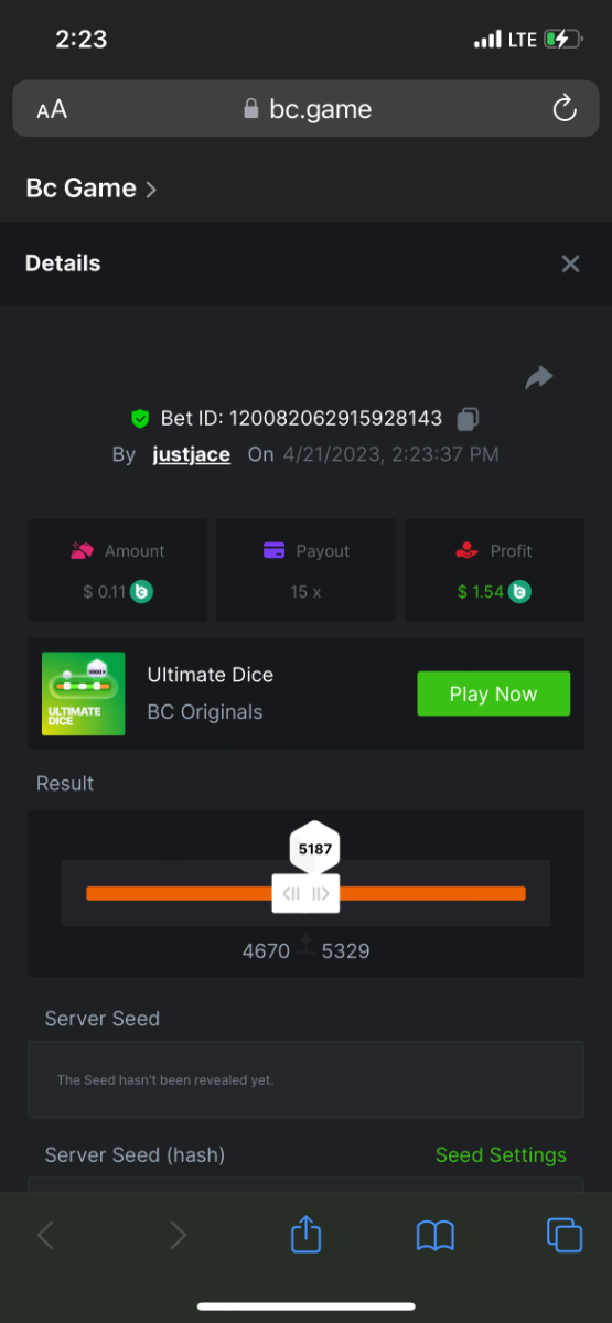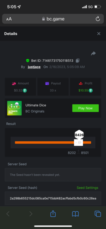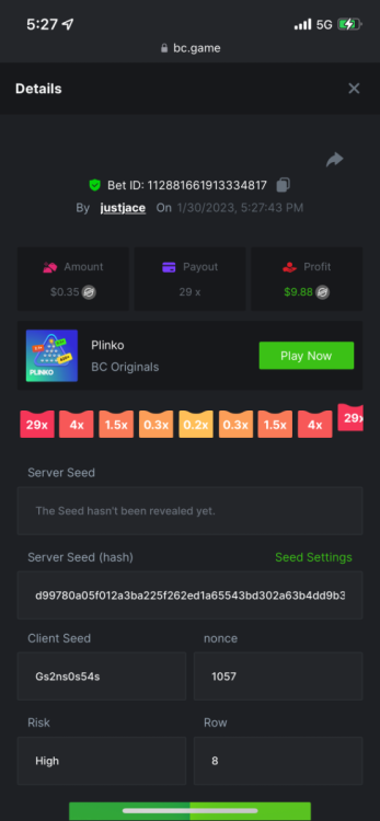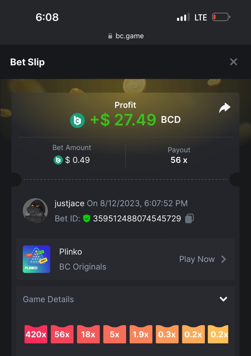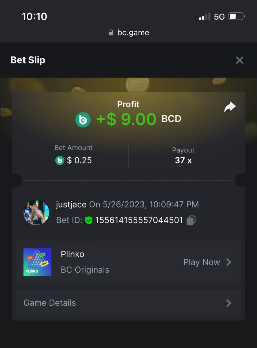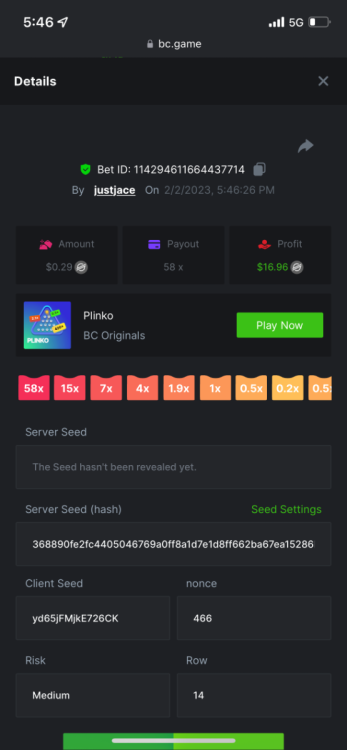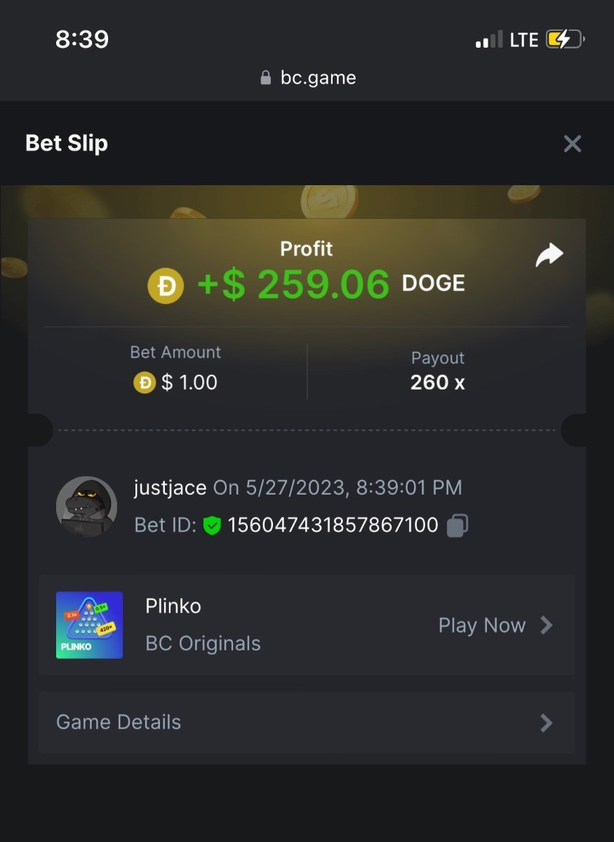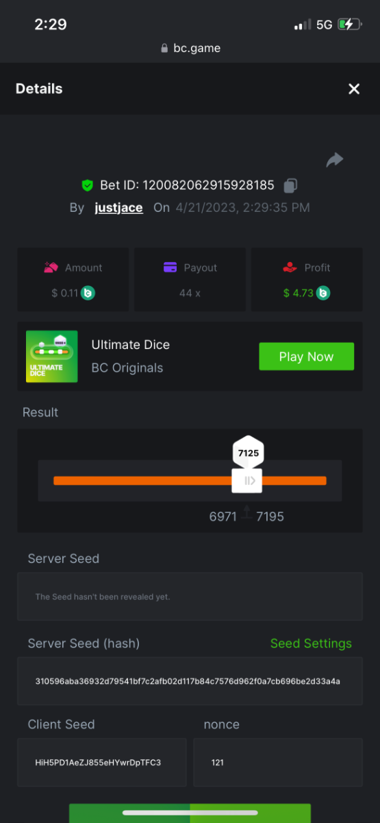 5.1x : https://bc.game/#/sd/1138ZN41M803RN 11x: https://bc.game/#/sd/1138ZWV6Q4I0IB 100x: https://bc.game/#/sd/113DU4H2V30MQB 180x: https://bc.game/#/sd/113DUHFTXSW4K3 63x: https://bc.game/#/sd/113E3M85OJT1XV -