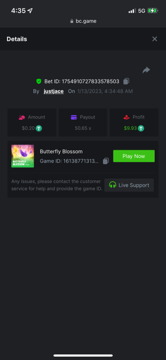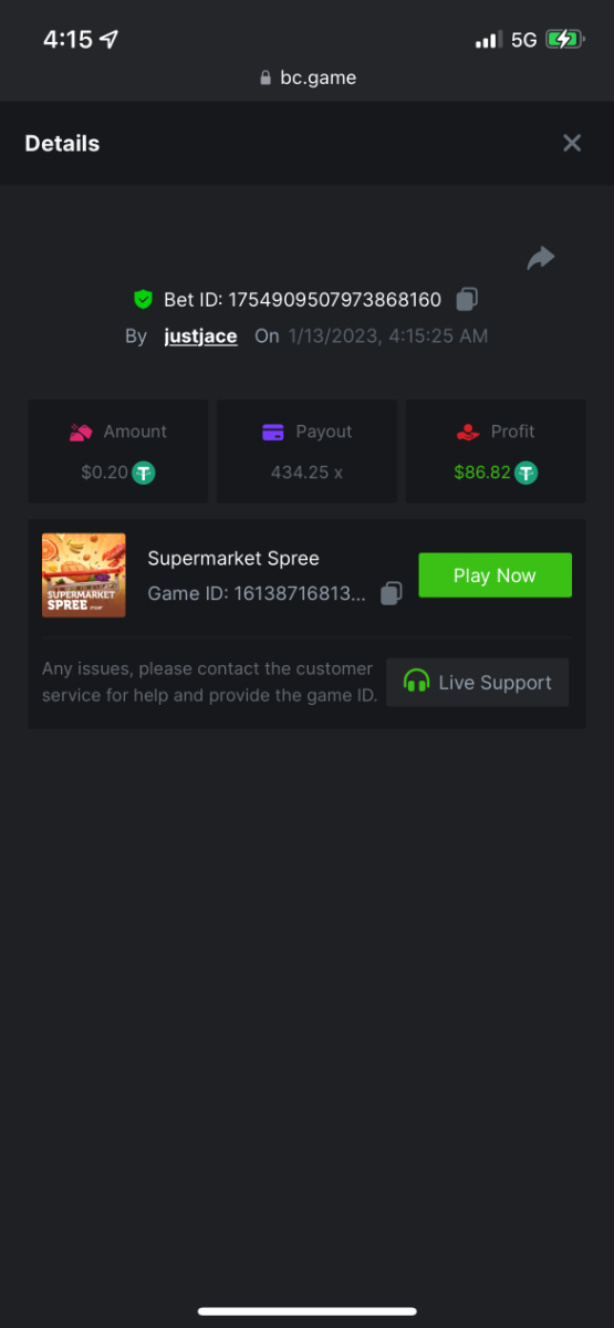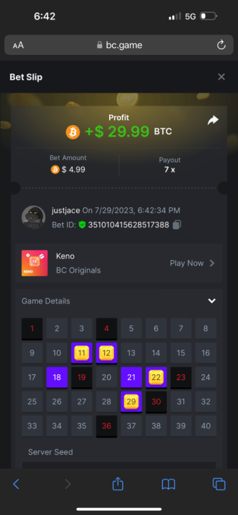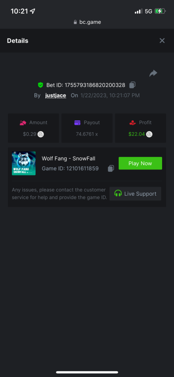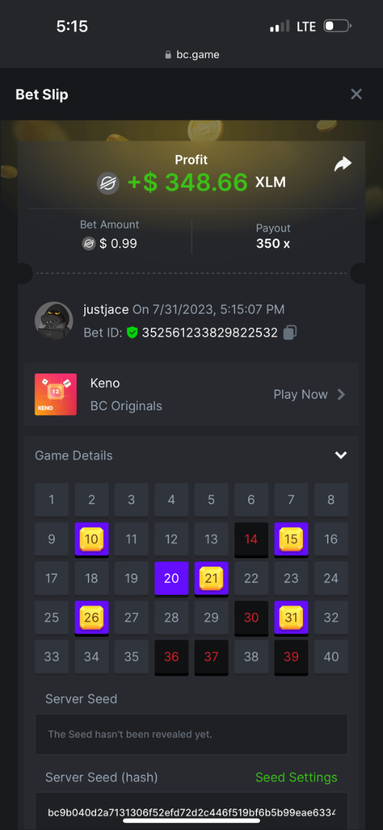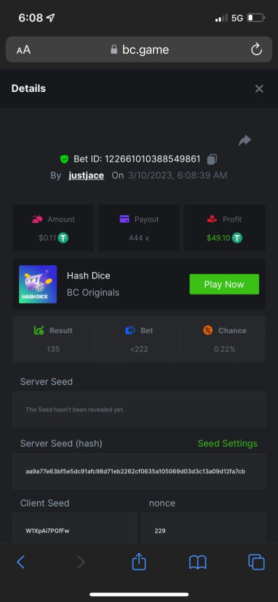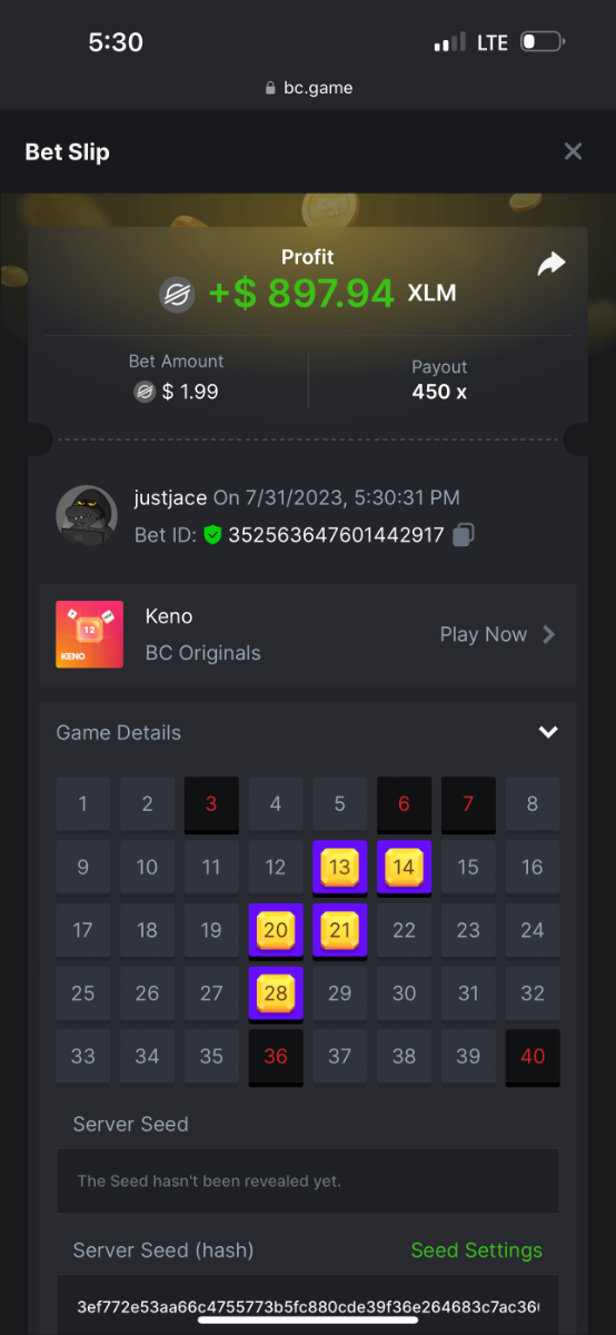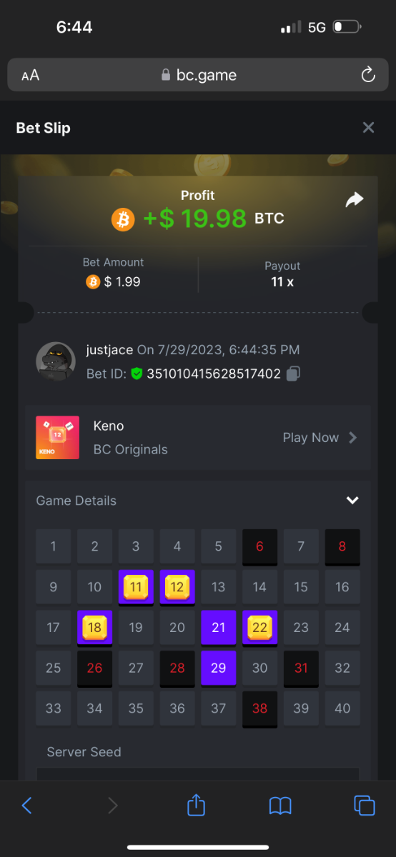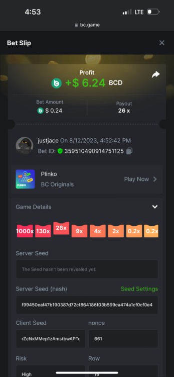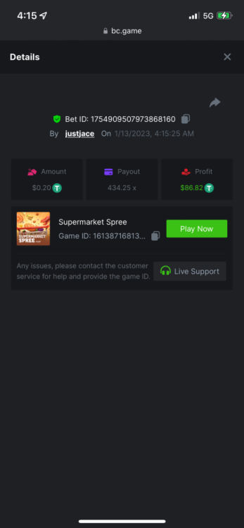 5.1x : https://bc.game/#/sd/1138ZN41M803RN 11x: https://bc.game/#/sd/1138ZWV6Q4I0IB 100x: https://bc.game/#/sd/113DU4H2V30MQB 180x: https://bc.game/#/sd/113DUHFTXSW4K3 63x: https://bc.game/#/sd/113E3M85OJT1XV -