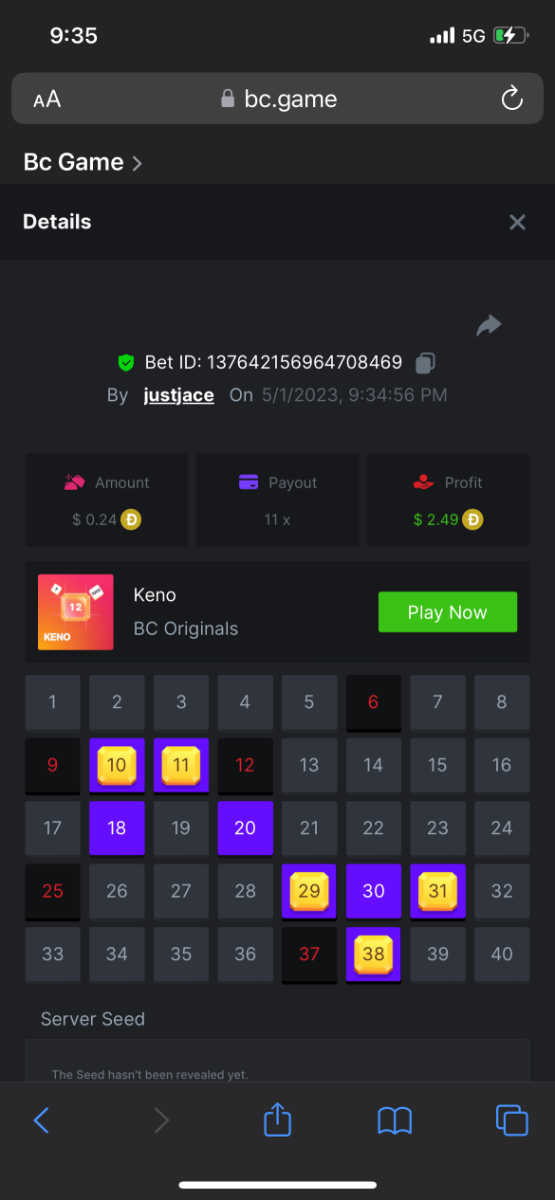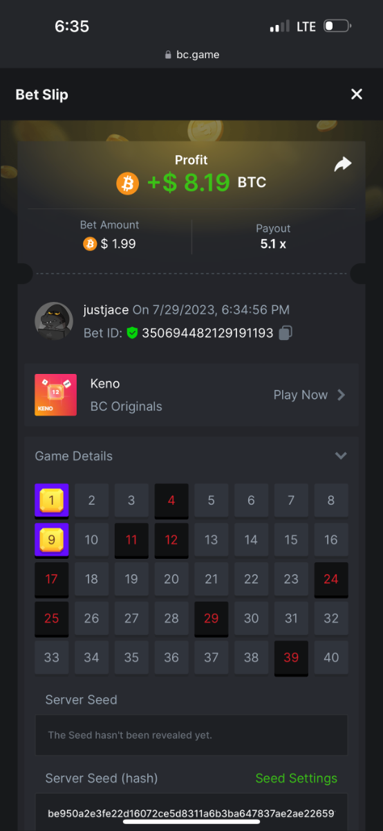 5.1x: https://bc.game/#/sd/118ROTNAR84R9V 8x: https://bc.game/#/sd/118RQVPP8BQYAB 11x: https://bc.game/#/sd/118RPW4RVZQVPV 56x: https://bc.game/#/sd/118RRFI8VER3TF 81.5x: https://bc.game/#/sd/118RS6P6T5KLJN 100x: https://bc.game/#/sd/118U0YISWJW5CJ