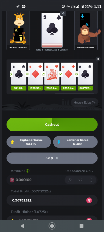 1. What in the $%#! Is up with this game. This is a complete joke. I only play this game for the hilarious you tube videos i make. And that one time i actually managed to win some decent dough. I cant tell you how many times $100 has vanished without the aligorythm even tfying to entertain you. In several videos i accurately predicted the skull coming up, one time 27 times in a row. Its so predictable but even knowing your about to get fucked cashing out is not going to help you cause the game hasnt allowed you to go up but one or two ladders. And dont try betting anything that might net you some actual dough cause thats when it breaks out the pineapple and then shoves it in backwards nice and hard. Try fast tapping that bet button and youll really see some skulls. 4 out of 5 times you rack up 3 ladders on the left and ni matter what you do your hitting a skull. I really enjoy the times when it takes all but a dollar and then proceeds to hit everything but a skull. But of course youve diwnsized your bet to a penny just so you can have one more pineapple jammed in sideways one more time. And proving that the random generater is as random as they want to make it according to your bet size, your playing rythem and speed and of course adjusting it to your bank roll. I once had a losing streak of 82 rolls without a money hit. Thats 82 skulls and blanks in a row. Custumer service said " that is the worst luck ive ever seen". Me and the four witnesses couldnt believe that guy was still trying to keep a straight face. But hey the videos are crazy funny with unbelievable runs of losses. Check them out.