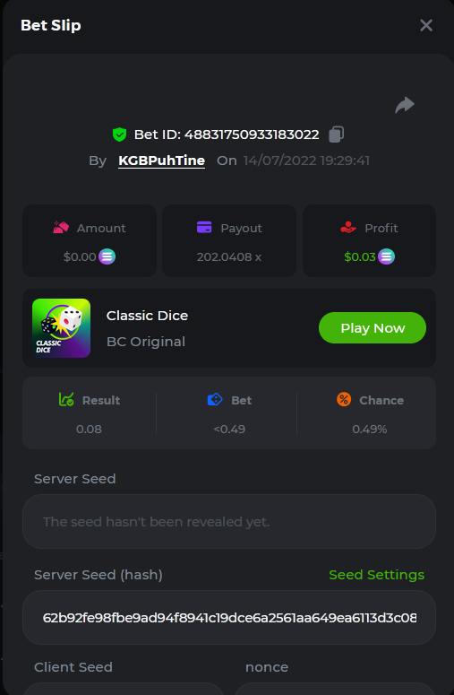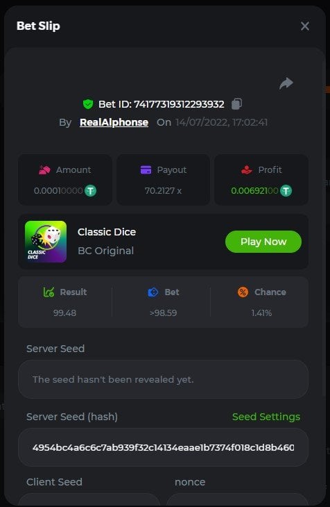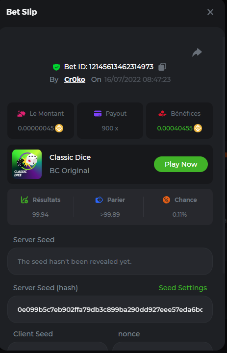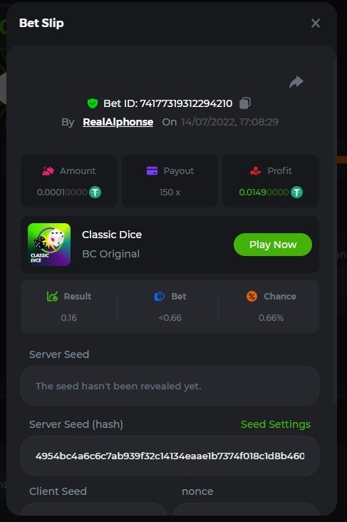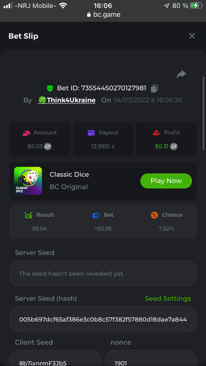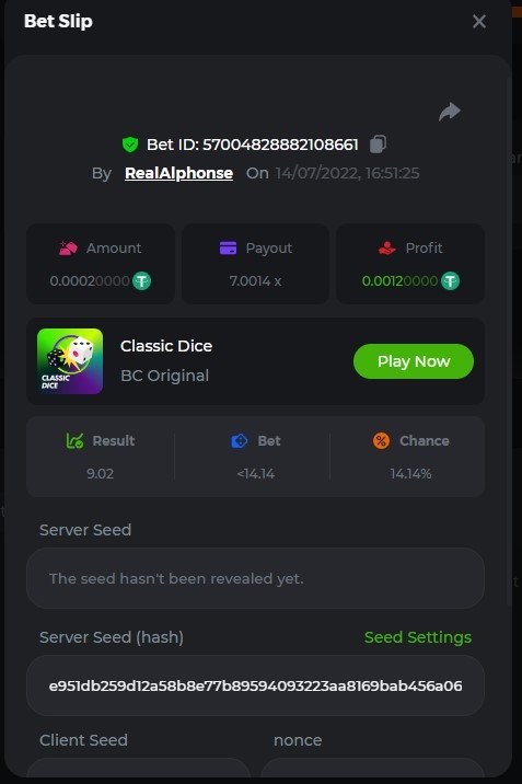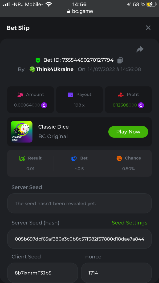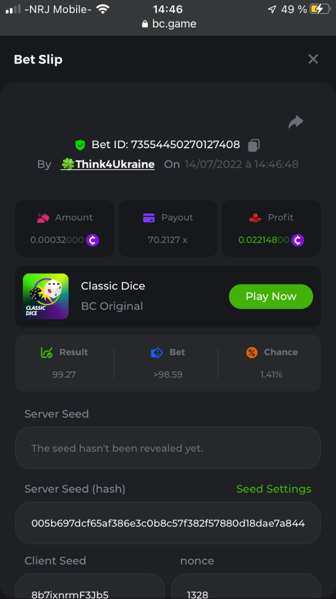 Member AkSyEn03 Posted July 14, 2022 Member Share Posted July 14, 2022 Challenge DICE Quoi de mieux pour finir la semaine qu'avec un challenge Dice classic de 48H ?Début 14/07/2022 a 16h fin le 16/07/2022 16h atteindre autant de multiplicateurs que possible dans la liste suivante... x7 X10 X13 X15 X20 X50 X70 X100 X130 X150 X200minimun pour etre qualifier> 3points Chaque pari correct comptera pour un point, les joueurs avec le plus de points seront les gagnants. si le nombre de joueurs augment le prix aussi !! Récompenses1ère place... 10BCD 2ème place... 7BCD 3ème place... 4BCD Règles :Ne publiez pas d'anciens paris Vous devez gagner le pari Vous ne pouvez gagner qu'une seule place Si vous enfreignez l'une des règles, votre pari sera annulé. Vous ne pouvez pas enregistrer les paris pour la fin, dès qu'ils sont corrects, ils doivent les partager.conditions mise minimum > 0.0001$ et jb interdis Il n'y a pas de niveau minimum Être de la chambre Française Vous ne devez avoir qu'un seul commentaire. Si vous souhaitez ajouter plus de paris, modifiez simplement le commentaire et ajoutez-les. En cas d'égalité, le joueur qui devine le pari en premier gagne. Comment entrer Accédez au jeu pour sélectionner votre ID de pari, cliquez sur l'icône Partager (↷) puis sur Copier le lien. Revenez au fil de discussion, collez le lien dans le champ "Répondre à ce sujet..." Par exemple : https://bc.game/sd/?sd=10IKIK3BP5T4PF Dans le même message, téléchargez une capture d'écran de votre victoire en cliquant sur l'ID de jeu AVEC le mode AFFICHAGE EN USD ACTIVÉ (accessible en bas du menu déroulant de votre portefeuille en haut) et Soumettre une réponse. Prêt! De cette façon, nous pouvons nous assurer que votre pari répondait à l'exigence minimale au moment de le placer : ❤ bonne chance a tous❤ Link to comment Share on other sites More sharing options...