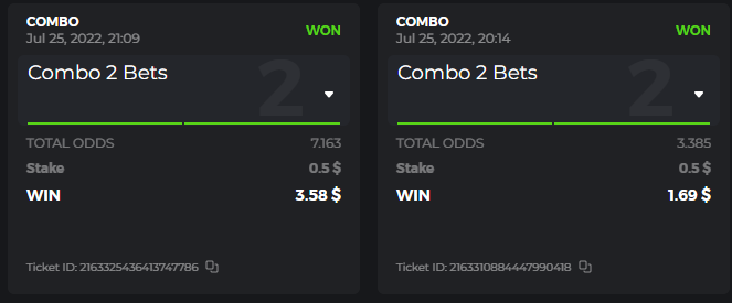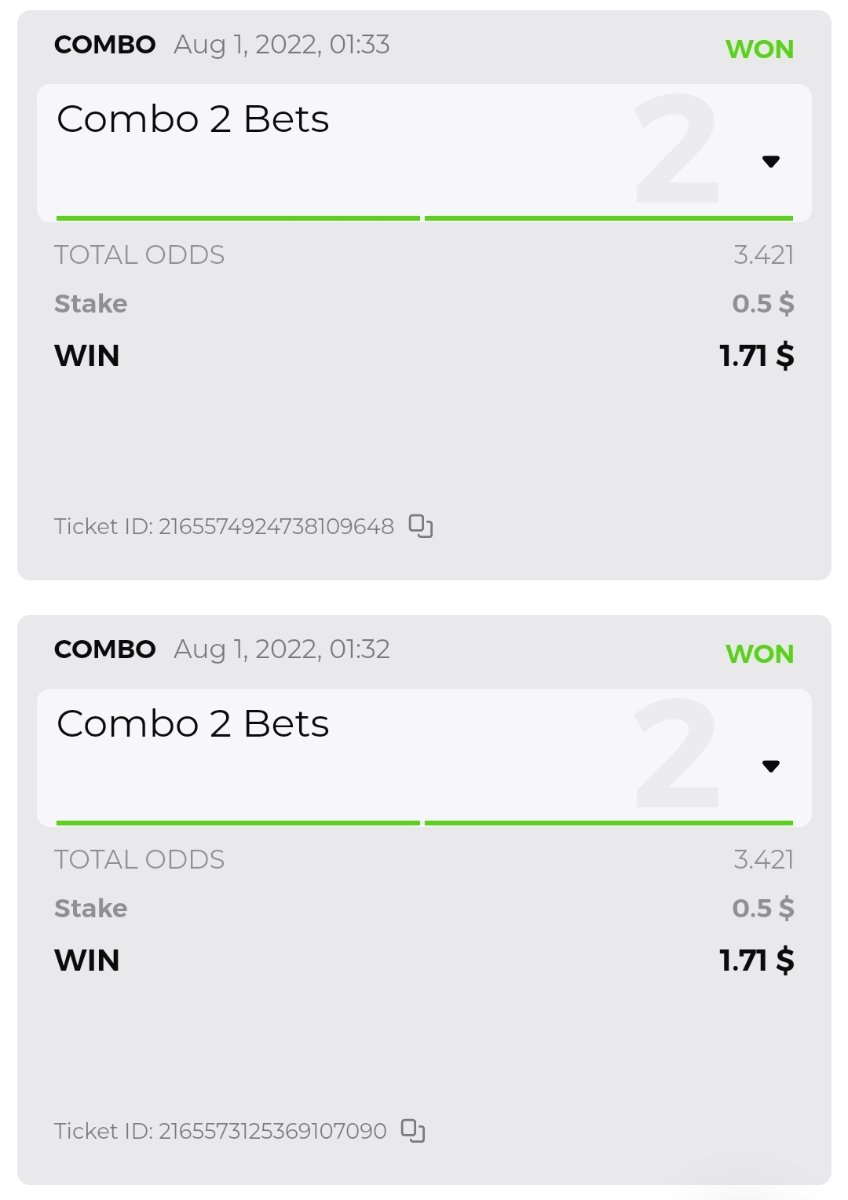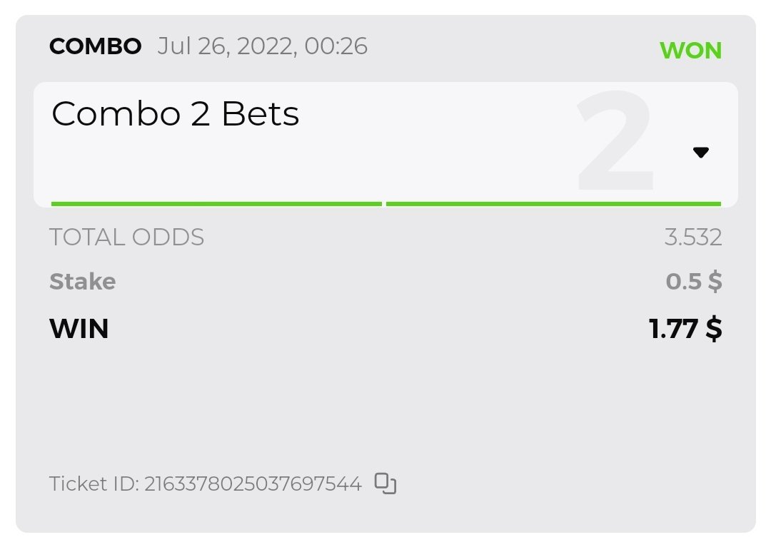Moderator Mat Posted July 25, 2022 Moderator Share Posted July 25, 2022 $250 - BC.GAME SPORTS PARLAYS CHALLANGES #14 Start: 25, July 00:00 UTC Ends: 31, July 23:59 UTC Hello, ladies and gentleman! Sports Parlay Challenges #14! With a prize pool of $250, the Top 7 takes home a grand prize, and the remaining $60 will be split among all other entrants! What is the challenge? Place a Sports Parlay/Combo Bet to qualify for the challenge Only 1 parlay per match. A parlay consists of two or more sports bets on a single ticket with a higher multiplier. The ODDS for each game will be added up and counted as total points. Minimum VIP No Minimum VIP Level Minimum payment There is no minimum multiplier, however, only the top 5 winning parlay multipliers will win the grand prize! Minimum bet size Equivalent to US$ 0.50 Eligible currencies All cryptocurrencies are eligible (except JB) Rewards available 1st place.......$70 2nd place.....$50 3rd Place...... $30 4th Place...... $20 5th Place...... $10 6th Place...... $5 7th Place...... $5 The remaining $60 will be split among all other participants who meet the minimum requirements and minimum stake. How to enter: To participate, post your Ticket ID, along with your Parlay link, as a reply to this thread as follows: Link bet: https://bc.game/sports/?bt-path=%2F%3FbtBookingCode%3D561A9D1 + Ticket ID 2126602890796736992 If you don't know how to get your sports betting link, go here! Along with the screenshot of your accumulated ticket. Ticket ID 2126602890796736992 If a selection results in a void or push, the bet will remain eligible as long as it remains equal to or greater than a triple bet and meets the odds requirements. Bets withdrawn will not be counted. Hedging is strictly not allowed Please combine all your hits into a SINGLE post. Edit your existing post to get additional hits, don't create a new post. Bets must be placed during the time window specified above. This thread will automatically lock when the time period ends. One (1) entry per family. If someone finds multiple prizes, they will be disqualified from the challenge as well as all future challenges. Failure to follow the instructions will result in the cancellation of your submission. By entering this challenge, you acknowledge that BC.Game has final decision rights over results and placement. All prizes will be paid out in BCD within 72 hours of completing the challenge.. Link to comment Share on other sites More sharing options...