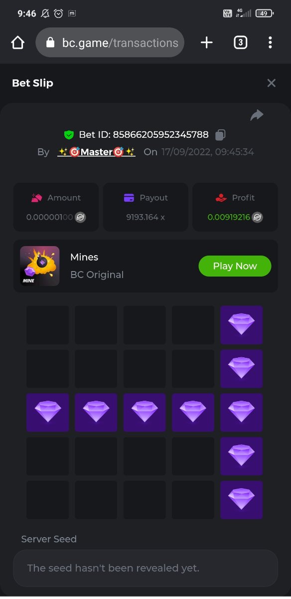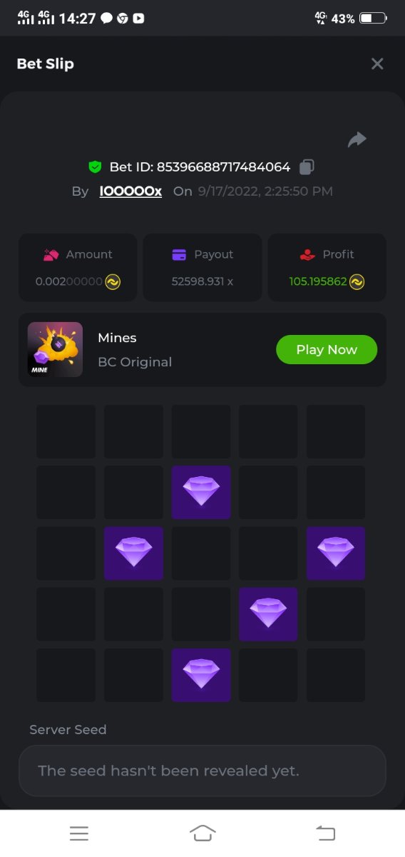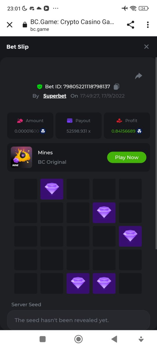 Black Tiger Posted September 17, 2022 Share Posted September 17, 2022 (edited) Read Carefully Before Start To Hunt Daily Challenges #17: MinesHunt :Win the highest pay outMin Payout requirement 100xMin Level 4️Duration Starting : Now End time : 23.59 UTC Time How to Join? Only Post on BC.Game Telegram Official HEREMake screenshot + paste your bet link To get bet link can check HERE Any coin allowedReward Prizes 1st Place....... $7 BCD2nd Place..... $5 BCD3rd Place...... $4 BCD 🎖4th Place......$3 BCD5th - 10th Place......$1 BCD 🏵 Winners will be announcing next day after Roll Point ========================== On Going Event $4,000 Top Tier Spinomenal Multiplier Battle! $2,500 Prestige Tower Legend Challenge #46 Soccer Top 5 league 100% cashback ! $250 BC.GAME SPORTS PARLAYS CHALLENGES #21 $500,000 Spinomenal's Grand Holiday Tournament TOUCHDOWN! NFL 50% Cashback ! Forum Daily ChallengesDiscord Daily CHallengesTelegram Daily Challenges Edited September 17, 2022 by Black Tiger Link to comment Share on other sites More sharing options...