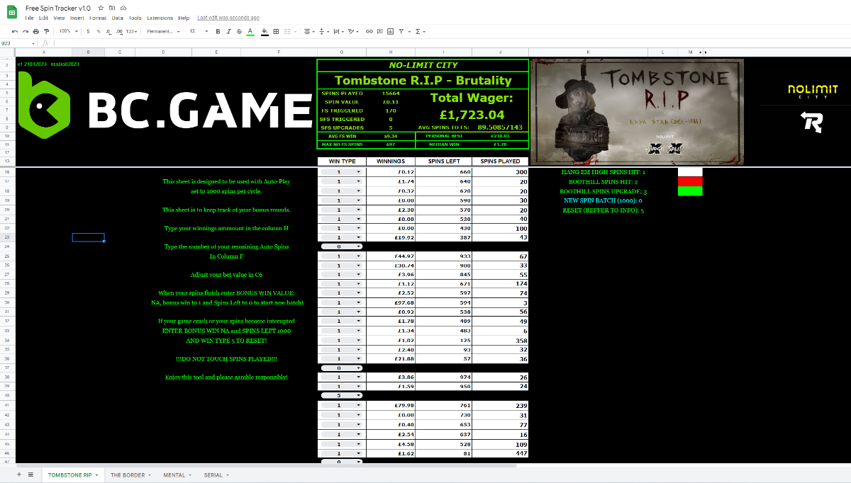 (SHEET TOOL) Freespin tracker