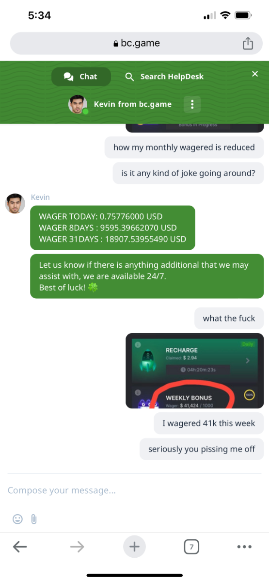 Deep4788 Posted March 31, 2023 Share Posted March 31, 2023 Bc games and support totally sucks if anyone or bc games official’s not agreed with then just check the screenshots I added in this post. My weekly bonus on account showing $41k and support said $9556 only Also few hours ago in my account monthly bonus showing $42k+ and now it showing $10k Link to comment Share on other sites More sharing options...