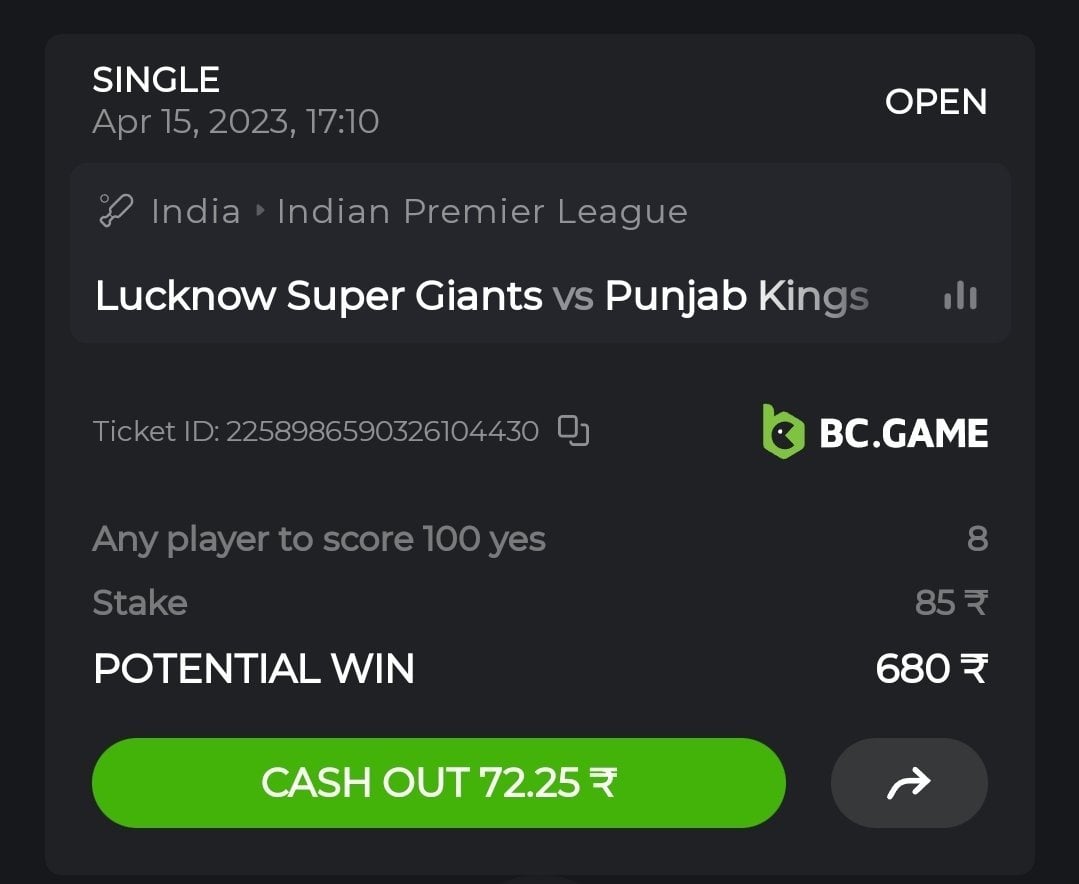 Moderator LuCifer_BcGAmE Posted April 11, 2023 Moderator Share Posted April 11, 2023 $100 BC.GAME Sports IPL Challenge #2 ️ Start: 10, April ️ Ends: 16, April What is a Challenge? Make a bet using the sports IPL Matches and bet-markets of your choice!!!All submissions from a player will be added up as a final score.Topic closed 1 hrs before the Match. REQUIREMENTS Minimum VIP Minimum VIP 04 Level and above. Minimum Odds requirement Minimum odds 1.85 (European) and above. Minimum bet size Equivalent to US $1 Bet type Only Pre-match OPEN Bets Eligible currencies All cryptocurrencies are eligible (except JB,BCL) Available Prizes Positions 1st 2nd 3rd 4th 5th 06th - 15th Prizes $30 $25 $15 $10 $05 $1.50(each) GENERAL TERMS Cash out Bets will not be counted.Per match only one bet allowed.Please combine all your hits into a SINGLE post. Edit your existing post to get additional hits, don't create a new post.Bets must be placed before the Match startOne (1) entry per family. If someone finds multiple prizes, they will be disqualified from the challenge as well as all future challenges.Failure to follow the instructions will result in the cancellation of your submission.By entering this challenge, you acknowledge that BC.Game has final decision rights over results and placement.Hedging is strictly not allowed. Link to comment Share on other sites More sharing options...
