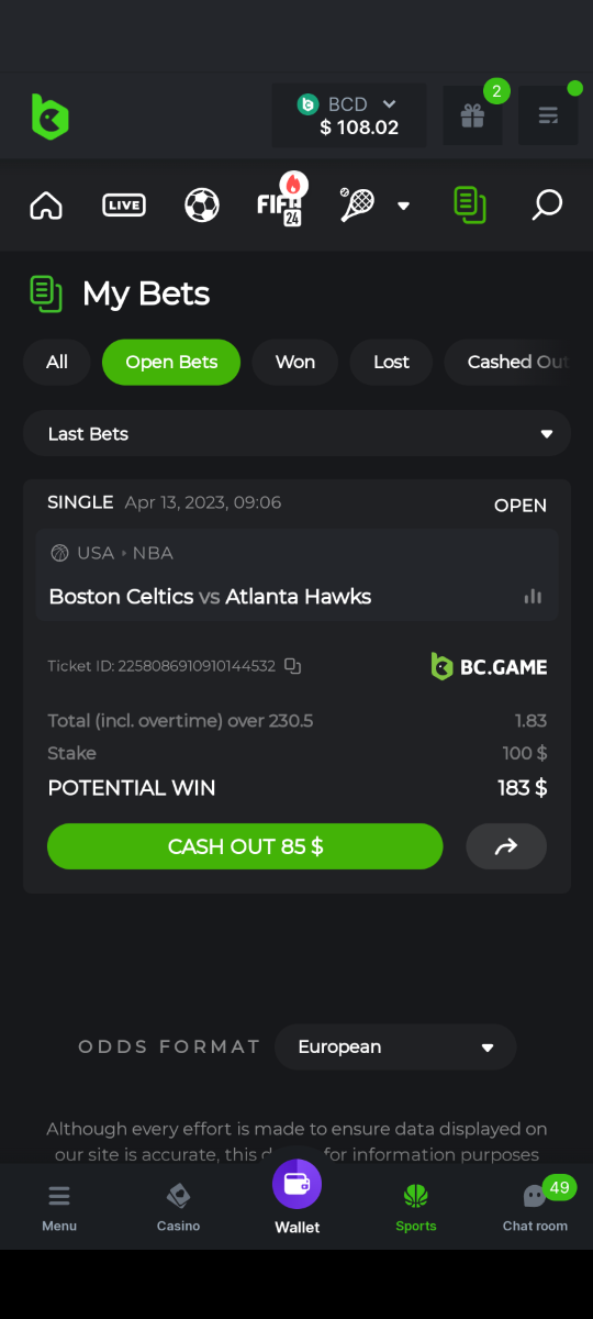 Event Team BCGame_Maxim Posted April 12, 2023 Event Team Share Posted April 12, 2023 (edited) Sports Guarantee 100% Cashback! #23 Starts: 12, April 01:00pm GMTEnds: 19, April 01:00pm GMT Dear BC Family!!! Enjoy our unique and fantastic guaranteed event—A Memorable, zero-risk chance to endeavour your betting instinct again. The opportunity is here, and luck in the match's odds, limited to the first 300 entries !!! First come first serve basis!!! This time, on your 'OPEN' bets we guarantee 100% cashback on your loss, up to US $100! Don’t miss this amazing chance! A chance to play zero-risk bet on the Specific NBA Match. RULES Place a Bet on our Specific NBA Match and get a guaranteed 100% cashback if you lose! This post will be auto locked 30 minutes before the match start time. Submit your bets 'OPEN'. Only LOST bets from the first 300 entries will get 100% cashback. Edited posts are not allowed. Do not edit your post. Create a new one if necessary. Edited entries posts will not be entertained. Place a single bet on any bet-market of your choice. Using a Free bet ticket to enter this event is non-acceptable. Only one(1) single bet per person is accepted. Bet with “OPEN” is valid to submit. For multiple valid ticket IDs, only the highest will be considered. Single bets only - Multis & Combo parlays are not acceptable. Hedging is strictly not allowed. 100% cashback, up to $100 REQUIREMENTS Minimum VIP Minimum VIP 22 Level and above. 1. Must be email verified. 2. Must Enabled 2FA Minimum Odds requirement Minimum odds 1.5 (European) and above. Minimum bet size Equivalent to US $5 Bet type Only Pre-match OPEN Bets Eligible currencies All cryptocurrencies are eligible (except JB,BCL) ____________________________________ SELECTED MATCH TO BET Boston Celtics Atlanta Hawks Game Time: Sat, 15 Apr, 07:30 pm UTCMagic Link ____________________________________ HOW TO PARTICIPATE Post your Ticket ID, along with your ticket id & screenshot, as a reply to this thread as follows. Providing the bet link is not mandatory. Example for reference: Ticket ID: 2222136272049279484 TERMS & CONDITIONS The ticket ID will not be counted if the selected match results in a void or postponement. If the selected match is canceled or postponement, the round of this event will be canceled. Cashed-out bets are not eligible. Hedging is strictly not allowed. Bets must be placed & settled during the time window specified above. This thread will automatically lock when the event time ends. One (1) entry per family. If someone attempts to claim multiple prizes, they will be disqualified from the challenge as well as all future challenges. This may also result in account termination. Failure to follow the instructions will result in the cancellation of your submission. By entering this challenge, you acknowledge that BC.GAME has final decision rights over results and placement. Cashback will be paid within 48 hours after the event on the forum finishes in BCD for bets placed in cryptocurrency and in fiat currency for bets placed using fiats up to a maximum of $100. Good Luck everyone! Edited April 15, 2023 by BCGame_Maxim a typing error corrected. 4 Link to comment Share on other sites More sharing options...