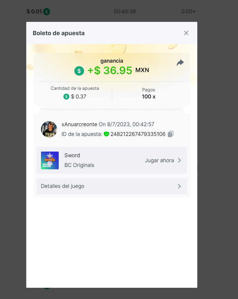 xAnuarcreonte Posted July 8, 2023 Share Posted July 8, 2023 Bet ID: 248212267479335106 User ID: 16157547 Thank you, have fun. Link to comment Share on other sites More sharing options...
