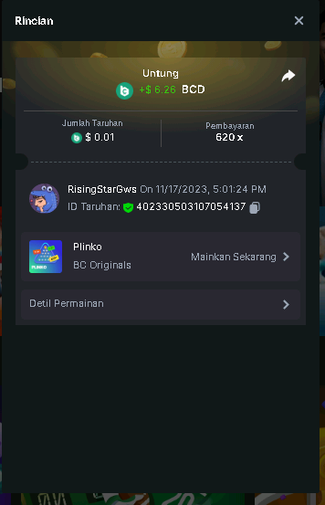 Moderator Giandreas Posted November 17, 2023 Moderator Share Posted November 17, 2023 Read Carefully Before Start To Hunt Forum Daily Challenges #421Hunt : Plinko Win the highest pay out Min Payout : 120x Min Level 4 ️Duration Starting : Now End time : 23.59 UTC Time How to Join? Make screenshot + paste your bet link + UID or Profile link Any coin, with min bet 0.01 USD is allowed (jb/bb/bcl not allowed) Reward Prizes 1st Place.....$7 BCD 2nd Place.....$5 BCD 3rd Place.....$4 BCD 4th Place.....$3 BCD 5th Place.....$2 BCD 🏵 Winners will be announcing next day after Roll Point! Link to comment Share on other sites More sharing options...