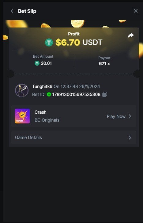 Moderator Giandreas Posted January 26, 2024 Moderator Share Posted January 26, 2024 Read Carefully Before Start To Hunt Forum Daily Challenges #491Hunt : Crash Win the highest pay out Min Payout : x20 Min Level 10️Duration Starting : Now End time : 23.59 UTC Time How to Join? Make screenshot + paste your bet link + UID or Profile link Any coin, with min bet 0.01 USD is allowed (jb/bb/bcl not allowed)Reward Prizes 1st Place.....$7 BCD 2nd Place.....$5 BCD 3rd Place.....$4 BCD 4th Place.....$3 BCD 5th Place.....$2 BCD 🏵 Winners will be announcing next day after Roll Point! 1 Link to comment Share on other sites More sharing options...