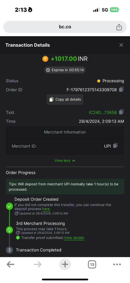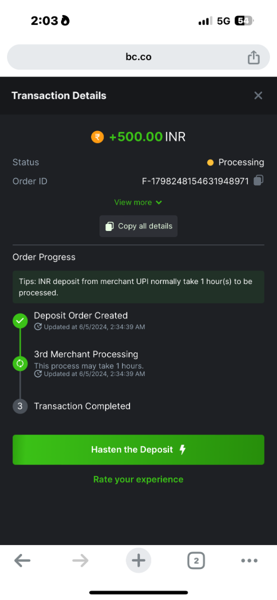 Deposit amount not received