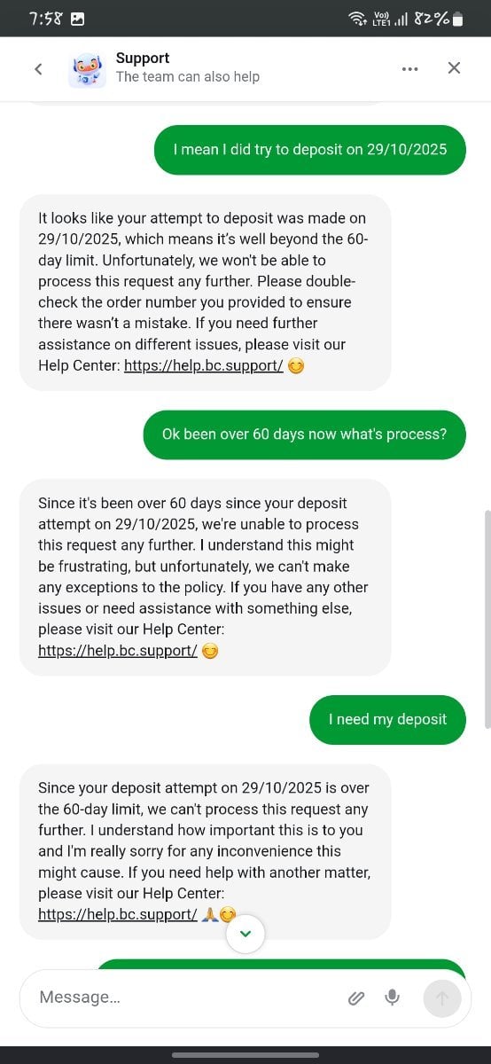 I have been facing a serious issue with a deposit that was successfully paid from my side but has not been credited to my BC.Game account. I have provided every proof possible, yet I have received no resolution or meaningful support.