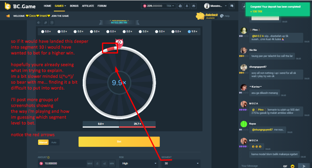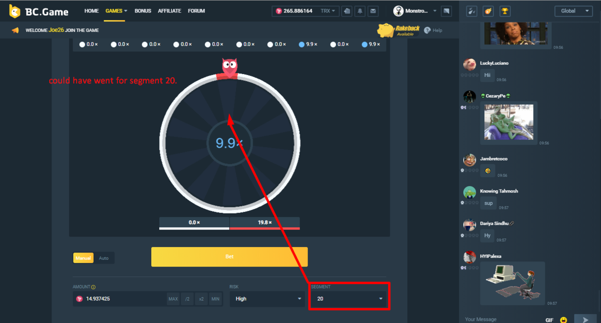 Monstrous Eberto Posted July 26, 2020 Share Posted July 26, 2020 so i tried explaining this in the screenshots. but didn't get to as well as i planned. but here's what i'm learning about this game. i started off playing this game on low risk and now i play it only on high risk. why? because i'm now only having to guess how deep into the segment is it going to stop when i hit my win. this changes the need to raise your bet to catch profit. instead i just change the segment to a higher number if i want a higher payout. and a lower segment if i sense its going to stop before the segment i'm currently betting for. After a win or two i'll go back to minimum bet to race through the expected loss streaks and when i sense if its going to hit i'll raise my bet and then i'll contemplate if it will be a shallow 10 (stopping in the first half of the blue) or a deeper 10 (stopping past half way into the blue) if i decide its going to stop deeper, i will change to a higher segment. Another way i was playing earlier was betting on 10 till it won the raising my segment till i hit all of them. however i was able to hit 50 when betting a 40 segment and when i raised to 50 after it went to where i wopuld have won a 40 segment. so this is why i am pointing this new strategy out. hope it helps. The segment at high risk stays the same slice of pizza. just gets smaller of course. terrible at jokes but seeing one anyways; its like opposite of what we're taught, that the more you invite to the party, the more slices of pizza you'll need. well at bc.game you want the smaller slices. because they are magically bigger and fill you better than the big ones. big slice = 9.9x v.s. smallest slices = 49.5x... La^.^e/ I Know or so long as you keep your eye on you're slice you'll be satisfied. or be fat to be safe. or lol. anyone who can make this joke a joke that makes me literally laugh out loud, i'll tip you in game anyways, as i said in the third screenshot, i'll post more of what i'm trying to explain. they will be separate comments to this post that are in groups of 2 to 5 pictures depending which segment hits or would have hit. simply take note of the red arrows as i'm sure you'll understand what i'm seeing too. and then come to my pizza party. i have one pizza. and i want only one slice. who else is coming? share your wins if you're using this strategy. lets call it the Wheel Pizza Strategy. we'll pizza strategy. real piece of strat. ay G? Link to comment Share on other sites More sharing options...