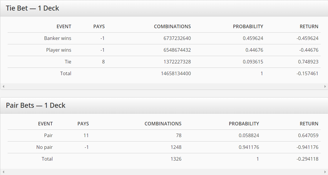 _Joe Posted November 7, 2020 Share Posted November 7, 2020 Should you bet on PLAYER? BANKER? TIE? Or PAIR BETS?? This EPIC guide is here to help you! Sit back, relax, and get ready to throw your chips on the table as I guide you through BCGame’s latest edition to the family - BACCARAT! Introduction · House edge – 1.1% - 98.9% RTP (Return to player) · Single deck game – each round starts with a new randomised single deck · Multiplayer – you are playing alongside others on the table · Cards are given point values as follows: Ace = 1, 2-9 = pip (shown) value, 10 and face cards = 0. More details of this below In baccarat, each card has a point value: the 2 through 9 cards in each suit are worth face value (in points); the 10, jack, queen, and king have no point value (i.e. are worth zero); aces are worth 1 point; jokers are not used. Hands are valued according to unit’s digit of the sum of their constituent cards. For example, a hand consisting of 2 and 3 is worth 5, but a hand consisting of 6 and 7 is worth 3 (i.e., the 3 being the units digit in the combined points total of 13).The highest possible hand value in baccarat is therefore nine. Rules Players have 15 seconds to decide whether to bet on the Player, Tie, Player Pair and/or Banker Pair. After the 15 seconds are up, no more bets are allowed and the dealer gives two cards each to the Player and Banker hands. The maximum number of points in both the Player and Banker hands is 9. The way to arrive at the points per hand is to take the total points of each individual card in the hand. If the sum is more than 9, then drop the first digit. For example, if either hand had a 9 and 7, then you would drop the 1 from the total of 16, for a 6-point hand. A third card may or may not be dealt to either the Player or Banker hands, depending on the following rules. If either the Player or Banker have 8 or 9 points, it is referred to as a "natural." If there is at least one natural, then both hands will stand. Otherwise, if the Player's total is 5 or less, then the Player hand will draw one more card, otherwise, with 6 or 7 points, the Player hand stands. If the Player hand stands with 6 or 7 points, then the Banker hand will draw a third card on a total of 5 or less. Otherwise, with 6 or 7 points, the Banker will stand. If the Player does draw a third card, then use the Banker will use his positional advantage to decide whether to take a third card according to his total and the third card drawn to the Player, according to the following table. H = Draw third card S = Stand on two cards How does each outcome win? · The score of the Player and Banker hands are compared; the winner is the one that is greater. · The Tie bet wins if the Player and Banker hands tie. All bets on player and banker are a push (bet returned) · The Player Pair bet wins if the first two cards in the Player hand are of the same rank. · The Banker Pair bet wins if the first two cards in the Banker hand are of the same rank. Payout · Player bet: Wins pay 1 : 2 · Banker bet: Wins pay 1 : 1.95 · Tie bet: Win Pays 1 : 9 · Player Pair and Banker pairs: Wins pay 1 : 11 The reason the Banker gets paid less than the Player is the Banker enjoys a positional advantage, with more information available to make the decision on drawing a third card. The Math! The following return tables show the possible outcomes of the Player, Banker, and Tie bets for a single deck game. As the lower right cells in each table show, the house edge is 1.01% on the Banker bet, 1.29% on the Player bet, the odds and edge for Tie and Player/Banker Pair bets is also shown below. I hope this guide helped you in your quest for Baccarat glory! Good luck playing and stay safe! Link to comment Share on other sites More sharing options...